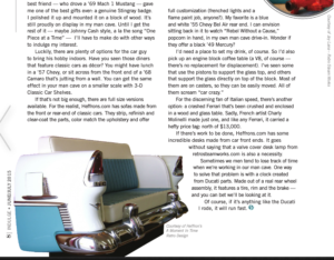 Take a sneak peak at an article written by Patrick O’ Donnell for the June/July issue of Indulge Magazine. He mentions “if theres work to be done, Heffrons.com has some incredible desks made from car front ends.” and mentions that his favorite Heffron’s product is a blue and white ’55 Chevy Bel Air car sofa. Click the image below to read the highlights of the article.